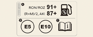 La etiqueta de combustible está adherida a la compuerta de llenado de combustible.
