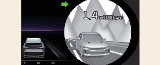 Il Monitor per la visione del punto cieco visualizza l'area del punto cieco posteriore del veicolo sul quadro strumenti quando l'indicatore di direzione viene attivato per contribuire al cambio di corsia in modo sicuro.