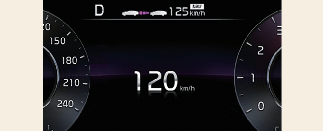 Quando lo Smart Cruise Control (Cruise Control intelligente) basato sulla navigazione è in funzione, verrà mostrato sul quadro strumenti come segue: