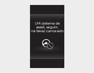 Se o condutor ainda não tiver colocado as mãos no volante após o aviso de mãos fora do volante, a mensagem de aviso "Lane Following Assist (LFA) canceled" (LFA (sistema de assist. seguim. na faixa) cancelado) é apresentada e a Assistência a seguimento na via é automaticamente cancelada.