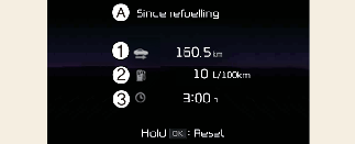 Pour réinitialiser manuellement les informations, maintenez le bouton OK enfoncé sur le volant en regardant Depuis le plein.
