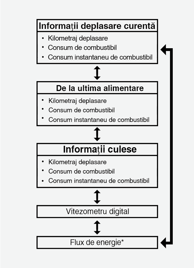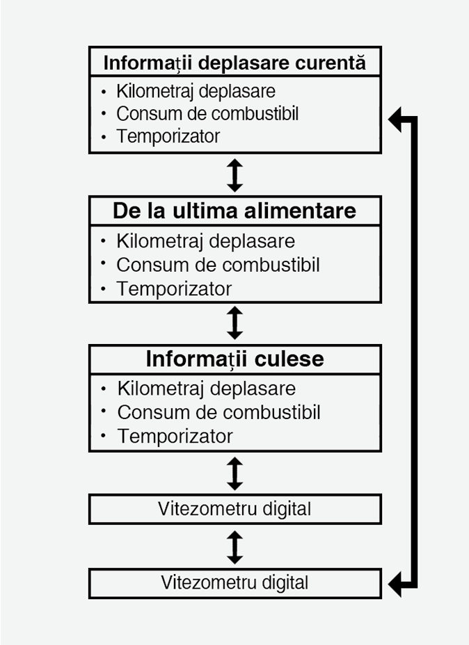 După alimentarea cu mai mult de 6 litri și rularea cu o viteză mai mare de 1 km/h, afișajul De la ultima alimentare se va reseta automat.