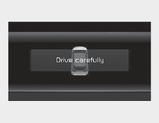 Când vehiculul este oprit din cauza frânării de urgență, mesajul de avertizare ‘Drive carefully’ (Conduceți cu atenție) va apărea pe panoul de bord.