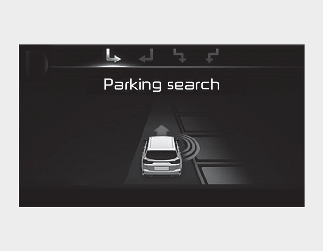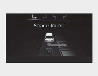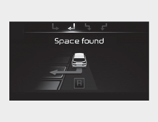 Dacă funcția a recunoscut deja un loc de parcare înainte de activarea funcției Asistență la parcare, este afișat mesajul “Parking search” (Căutare parcare) sau “Space found” (Spațiu găsit).