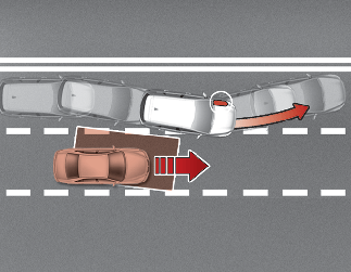 La schimbarea benzilor prin detectarea benzii din față, dacă Asistență evitare coliziune punct mort consideră că există un risc de coliziune cu un vehicul care se apropie în punctul mort, poate contribui la evitarea coliziunii prin cuplarea frânei diferențiale.