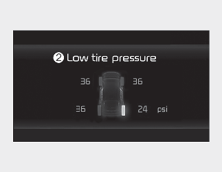 Presiunea pneului este afișată 1~2 minute după pornirea vehiculului.