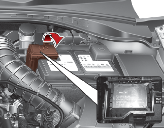 Panou de siguranțe în compartimentul motorului (capac borne baterie)
