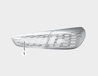 Dacă luminile de poziție spate (tip LED) (1) nu funcționează, verificați vehiculul la un atelier specializat. Kia vă recomandă să vizitați un dealer/service partener autorizat Kia. Lampa LED nu poate fi înlocuită ca o componentă individuală, deoarece este o unitate integrată. Lampa cu LED trebuie să fie înlocuită odată cu unitatea.