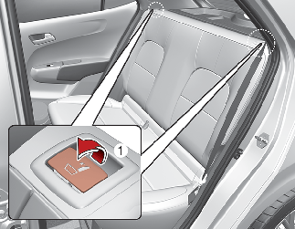 When folding the seat back, insert the rear seat belt buckle in the pocket between the rear seatback and cushion then make sure both seatbelts do not interfere with stowed luggage and cargo. Then, insert the seat belt into the two holes located on both sides.