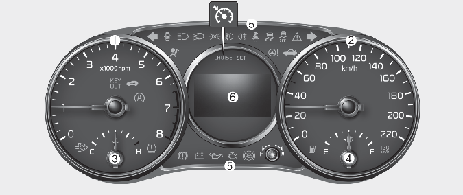 * The actual cluster in the vehicle may differ from the illustration. For more details, refer to More Details.
