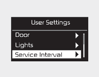 You can reset the menus in the User Settings mode. All menus in the User Settings mode are reset to factory settings, except language and service interval. |