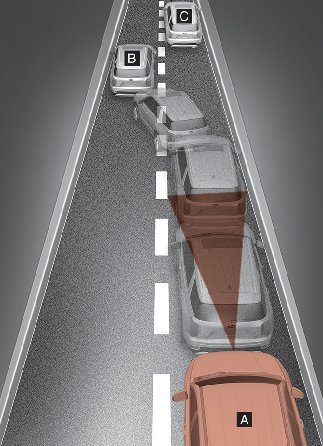 When a vehicle moves into your lane from an adjacent lane, it cannot be detected by the sensor until it is in the sensor detection range. Forward Collision-Avoidance Assist may not immediately detect the vehicle when the vehicle changes lanes abruptly. In this case, you must maintain a safe braking distance, and if necessary, steer your vehicle and depress the brake pedal to reduce your driving speed in order to maintain a safe distance.