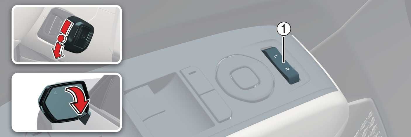 Pozycja przełącznika zewnętrznego lusterka wstecznego (1) określa ruch lusterka: