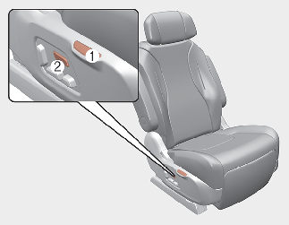 如果壓下一鍵式開關 (1),座椅會返回前次的位置。如果按下開關 (2),座椅會略微調整前次的位置。