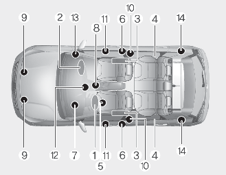 SRS fungerer bare når POWER-knappen står i PÅ-posisjon. Hvis varsellampen for SRS-airbagen ikke lyser, eller fortsatt lyser kontinuerlig etter ca. 6 sekunder når POWER-knappen er i stillingen ON, eller etter at bilen er startet, eller begynner å lyse mens du kjører, fungerer ikke SRS som den skal. I så fall bør du få systemet kontrollert på et profesjonelt verksted. Kia anbefaler at du oppsøker en godkjent Kia-forhandler/servicepartner.