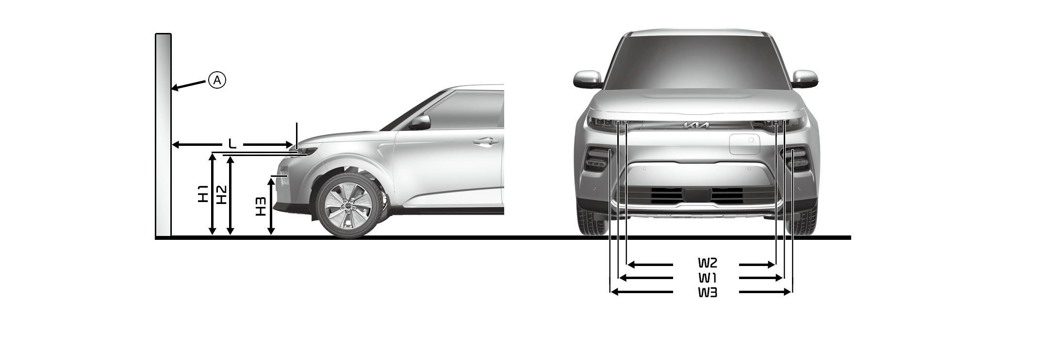 Strålkastarlampor och batteri ska vara i god kondition. Ställ in strålkastarna så att det ljusaste fältet riktas mot de horisontella och vertikala linjerna.