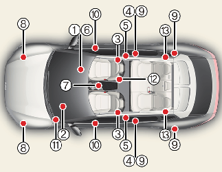 The airbag modules are located both in the centre of the steering wheel and in the front passenger's panel above the glove box. When the SRSCM detects a sufficiently severe impact to the front of the vehicle, it will automatically deploy the front airbags.