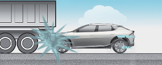 Heavy braking lowers the front portion of the vehicle causing it to "ride" under a vehicle with a higher ground clearance. Airbags may not inflate in this "under-ride" situation because deceleration forces that are detected by sensors may be significantly reduced by such "under-ride" collisions. |