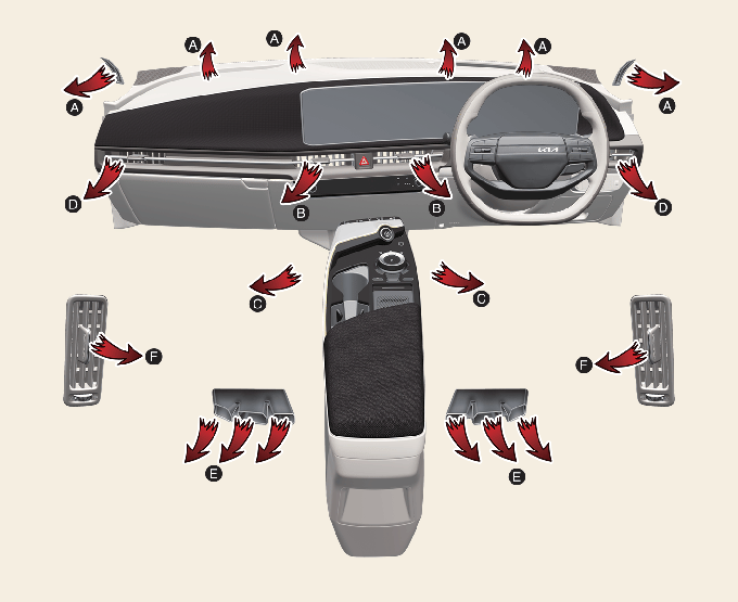 The vents (C), (E) are mainly used for heating and lukewarm air may be come out in winter.