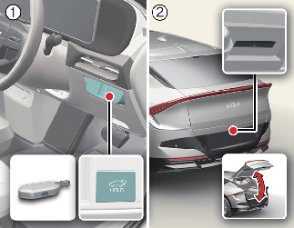 Press the power tailgate open/close button inside the vehicle or with the smart key for 1 second. The power tailgate opens with a warning sound.