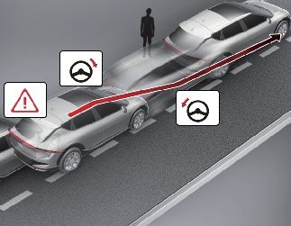 Evasive Steering Assist function will help avoid a collision with a vehicle, pedestrian cyclist, or powered-two wheeler in front of the car in the same lane. When a risk of collision is detected, Evasive Steering Assist function will warn the driver and assist the driver's steering if they move the steering wheel.