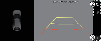 Rear parking guidelines are displayed in the rear view and rear top view. Select Setup → Vehicle → Driver Assistance → Parking Safety → Camera Settings → Display Information → Rear Parking Guidelines from the settings menu in the infotainment system to display this. However, rear parking guidelines are not displayed in the rear view whilst driving.