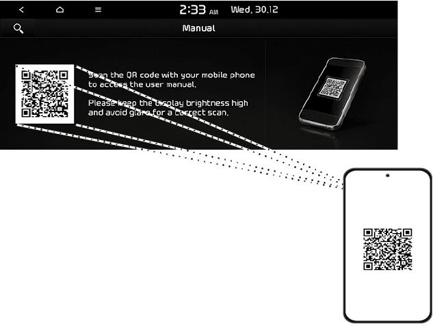 2. Scanning QR code : Press [SETUP] > [General] > [System info] > [Manual]. Scan the QR code, then tap the URL in the code to go to the web page.