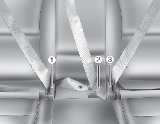 لا تستخدم القوة لقفل حزام المقعد الأيسر أو الأيمن في إبزيم حزام المقعد الأوسط.