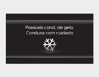 Se o aviso de estrada com gelo aparecer durante a condução, deverá conduzir com mais atenção e segurança, evitando excessos de velocidade, acelerações rápidas, travagens bruscas, curvas acentuadas, etc.