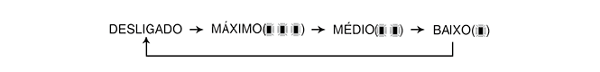 Sempre que premir o botão, o fluxo de ar irá alterar-se da seguinte forma: