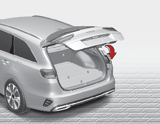 Para fechar a porta da bagageira, baixe e empurre-a com firmeza. Certifique-se de que a porta da bagageira fica corretamente fechada.