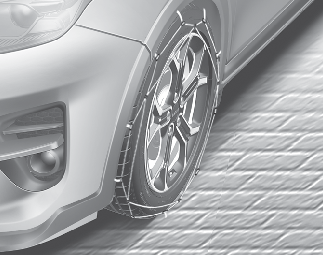 Mesmo com a corrente adequada instalada, não efetue uma volta completa (rodar o volante todo para um lado) ao conduzir o veículo. (Se efetuar uma volta completa, faça-o a uma velocidade inferior a 10 km/h.)