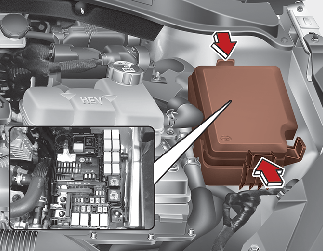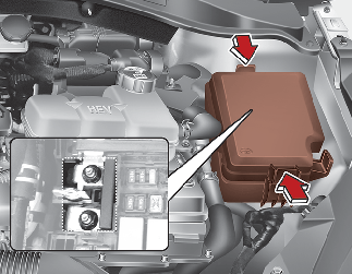 Depois de inspecionar o painel de fusíveis do compartimento do motor, coloque e fixe bem a tampa do painel até ouvir um nítido som de clique.