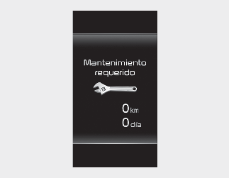 Si el kilometraje o el tiempo restante alcanza los 1500 km (900 millas) o 30 días, se mostrará el mensaje "Service in" (Mantenimiento en) durante unos segundos cada vez que coloque el interruptor de encendido o el botón ENGINE START/STOP (inicio/parada del motor) en la posición ON (activado).