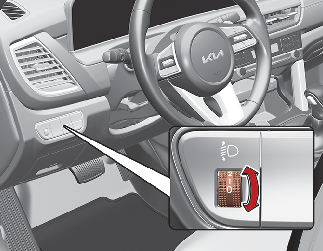 Para ajustar el nivel proyección de luz de los faros de acuerdo con el número de pasajeros y el peso de carga en el maletero, gire el interruptor de nivelación de los faros.