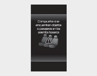 Al abrir la puerta delantera después de abrir y cerrar la puerta trasera y apagar el motor, aparece el mensaje de advertencia "Check rear seats for passengers and belongings" (Comprobar a los pasajeros y las pertenencias de los asientos traseros) en el tablero.
