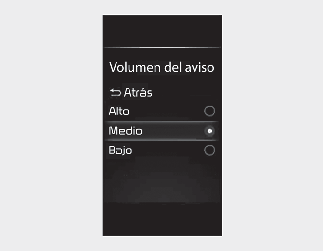 Asegúrese de que los métodos de aviso que configuró puedan aplicarse al volumen del aviso de otros sistemas de asistencia al conductor.