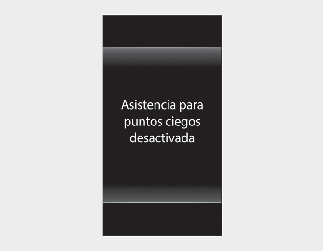 Al activar la Asistencia de prevención de colisión en punto ciego o al volver a arrancar el vehículo con esta función activada, la luz de advertencia de los retrovisores laterales aparecerá durante aproximadamente 3 segundos. Cuando se encienda de nuevo el vehículo con la asistencia de prevención de colisión en el punto ciego desactivada, aparecerá el mensaje de advertencia en el tablero.