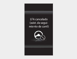 Si el conductor aún no tiene las manos en el volante después del aviso de sin manos, se mostrará el mensaje de advertencia y se cancelará automáticamente la asistencia de seguimiento de carril.