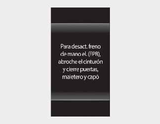 Si el conductor no lleva el cinturón de seguridad abrochado, la puerta del conductor está abierta, el capó del motor está abierto en D o maletero está abierto en D o R, se emitirá una advertencia una vez y aparecerá un mensaje.
