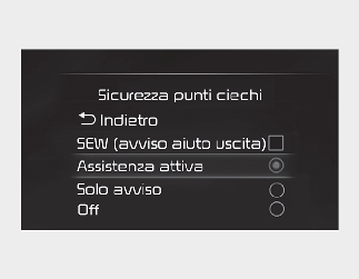 Se si seleziona 'Off', l'Assistenza anti collisione punti ciechi si spegne.