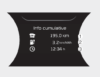 Dopo l'accensione : l'informazione sul consumo medio di energia si azzera automaticamente dopo 4 ore dallo spegnimento del veicolo.
