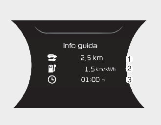 Le informazioni vengono combinate per ciascun ciclo di accensione. Tuttavia, se il veicolo rimane spento per 4 ore o più, la schermata Info di guida verrà resettata.