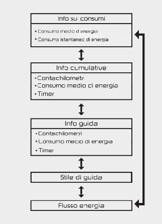 Dopo la ricarica : l'informazione sul consumo medio di energia si azzera automaticamente quando la velocità supera 1 km/h (1 mph), dopo aver ricaricato oltre il 10%.