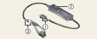 The charging current changes (3 level) whenever the button (1) is pressed for 1 sec with the charger plugged into an electrical outlet but not the vehicle.