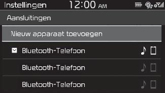 U hebt geen toegang tot het telefoonscherm wanneer er geen mobiele telefoon is verbonden. Om de bluetooth-telefoonfunctie te gebruiken, moet u een mobiele telefoon met het systeem verbinden.
