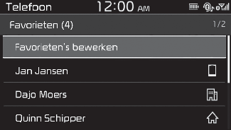 Als contactgegevens op de mobiele telefoon worden bewerkt, worden de wijzigingen niet automatisch overgenomen in de favorieten op het systeem. Daarvoor moet u een contact uit de favorieten verwijderen en vervolgens weer opnieuw toevoegen.