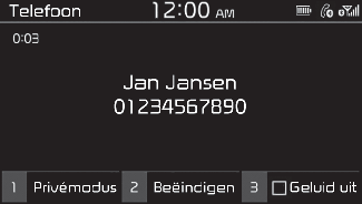 Als uw mobiele telefoon met het systeem is verbonden, kan het gespreksgeluid via de luidsprekers van de auto worden weergegeven. Zolang de telefoon zich binnen het verbindingsbereik bevindt, kan dit zelfs nadat u uit de auto bent gestapt. Om de verbinding te beëindigen, verbreekt u de verbinding van het apparaat met het systeem of schakelt u Bluetooth uit op het apparaat.