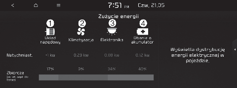 Można sprawdzić aktualny pobór energii każdego układu pojazdu.