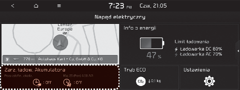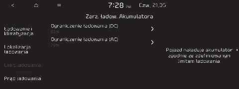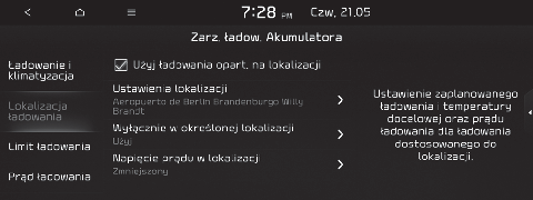 Możliwe jest ustawienie daty i godziny konieczności naładowania akumulatora, temperatury kontroli klimatu, opcji ładowania w zależności od lokalizacji i innych różnych funkcji.